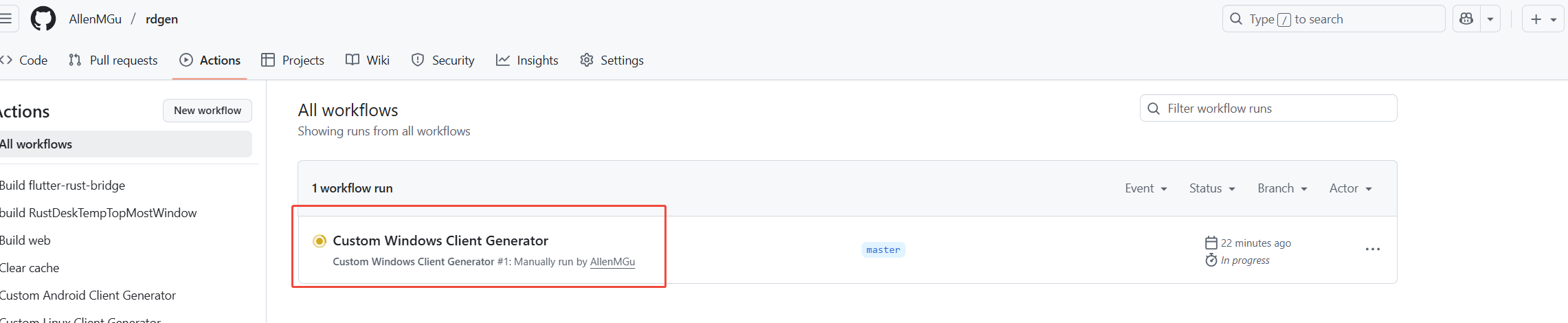 定义好自己的参数,点击 Generate Custom Client 然后到GitHub 确认 成功运行,等个半小时就好了。