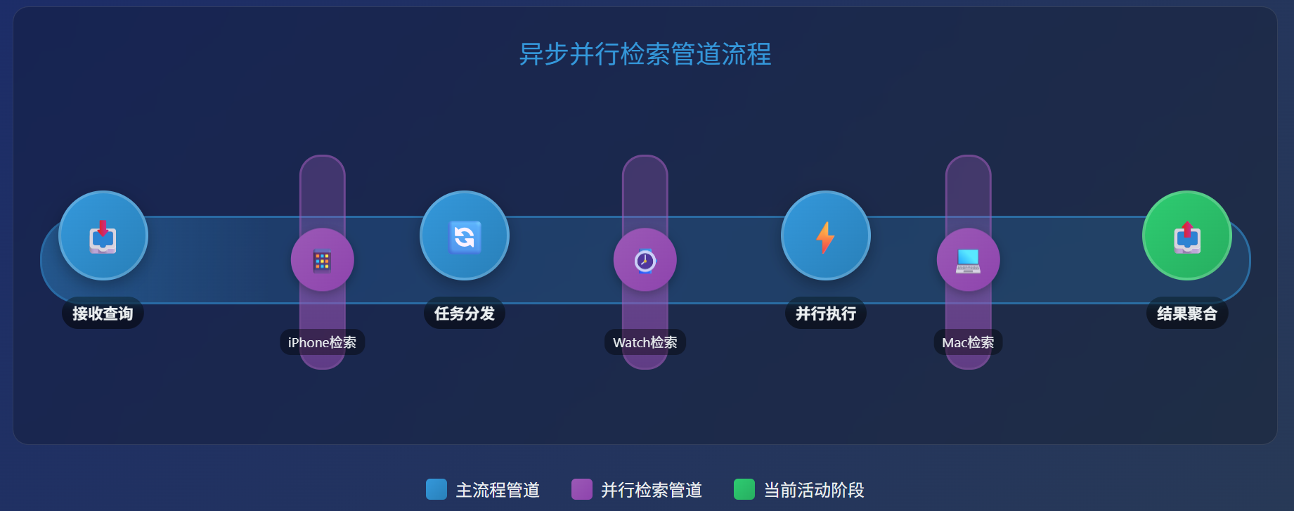 异步并行:利用异步框架(如python的asyncio)可以同时发起多个检索请求,而不必等待前一个请求完成再发送下一个。每个请求独立等待返回结果,事件循环负责调度,大幅减少总等待事件。