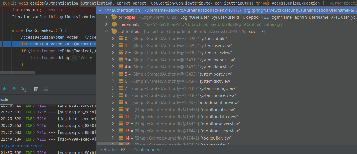 注:authentication里面的权限是认证时放入UserDetails中产生的