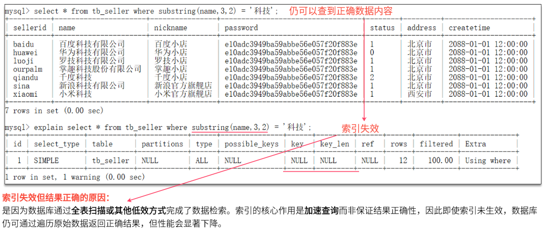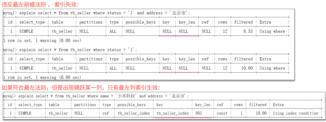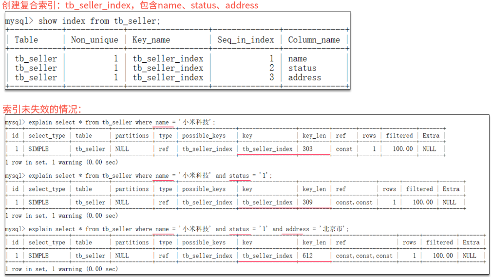 通过key和key_len检查是否命中了索引(索引本身存在是否有失效的情况)。