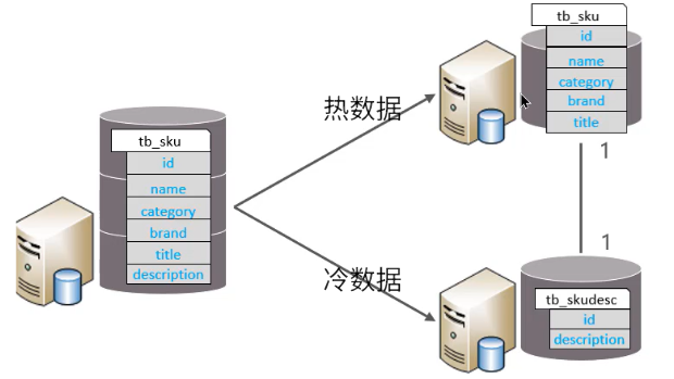 垂直分表:以字段为依据,根据字段属性将不同字段拆分到不同表中。