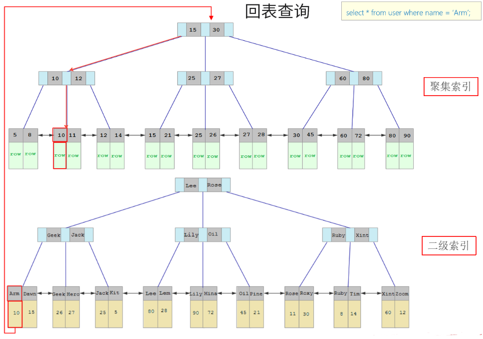 说明:如果数据结构是红黑树,那么查询1000万条数据,根据计算树的高度大概是23左右,这样确实比之前的方式快了很多,但是如果高并发访问,那么一个用户有可能需要23次磁盘IO,那么100万用户,那么会造成效率极其低下。所以为了减少红黑树的高度,那么就得增加树的宽度,就是不再像红黑树一样每个节点只能保存一个数据,可以引入另外一种数据结构,一个节点可以保存多个数据,这样宽度就会增加从而降低树的高度。这种数据结构例如BTree就满足。