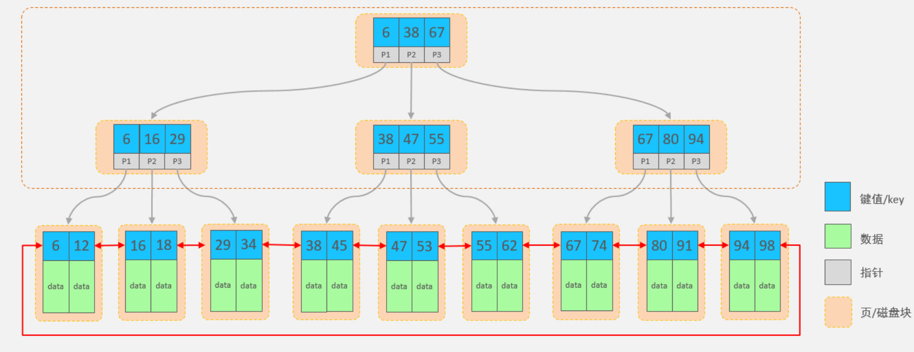 B+树便于扫库和区间查询,因为叶子节点之间是一个双向链表