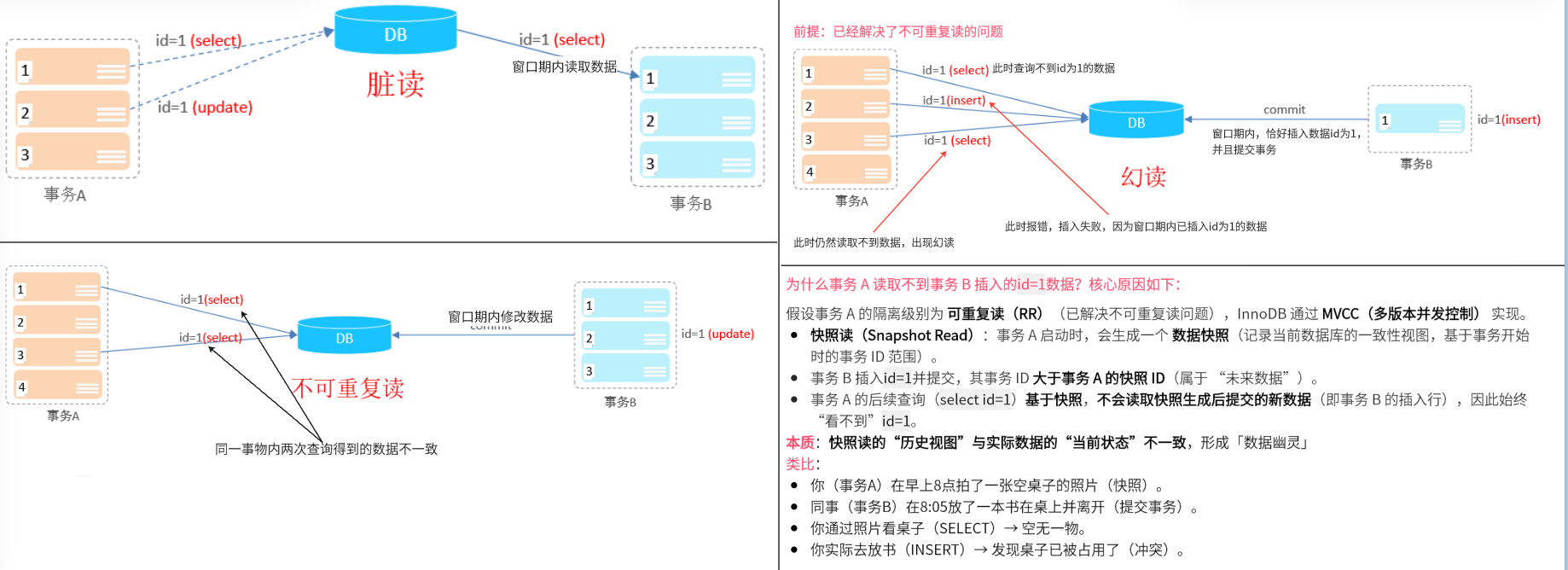 并发事务问题:脏读、不可重复读、幻读