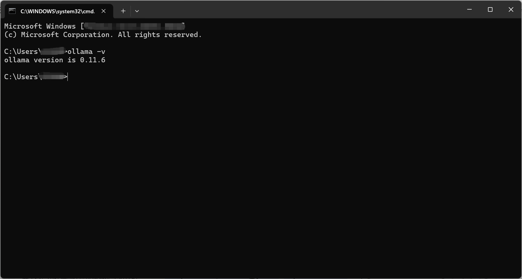 安装完成后,打开命令行,输入ollama -v,如果可以成功输出Ollama的版本号,则说明安装成功。