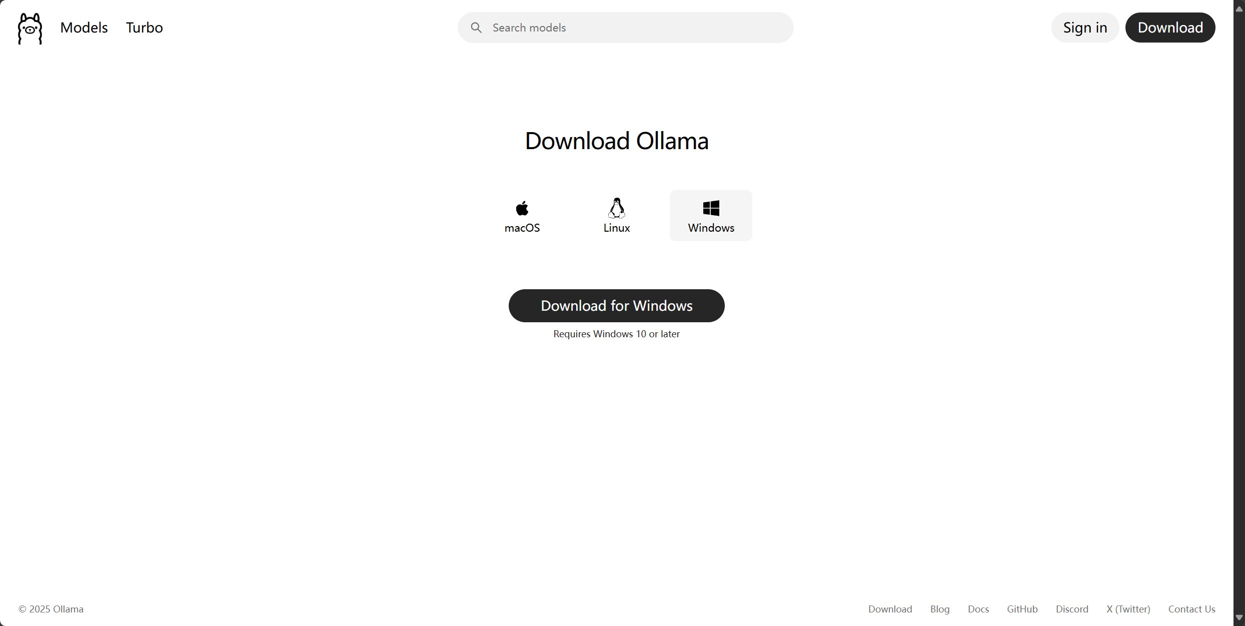 下载Ollama,选择自己电脑对应系统下载,我这里以Windows为例。注:要符合Ollama对系统的版本要求