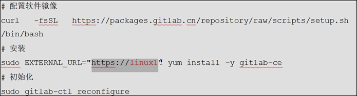 = EXTERNAL_URL 指定GitLab的对外访问地址,而 "linux1" 在实际场景一般是 服务器ip 或 域名.