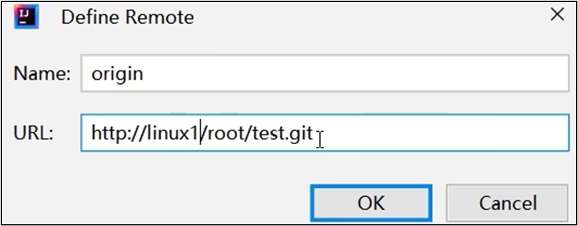 替换完成得到 "http://linux1/root/test.git",使用其替换掉 Define remote 的 URL 即可.