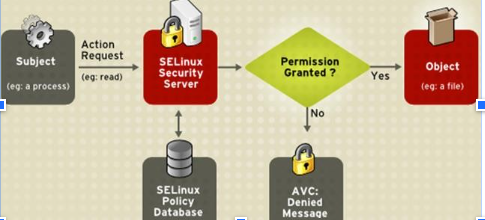 Subject 进程你要干嘛,你得问 selinux, 那selinux 去读一下数据库,按规则你不能执行或能执行。