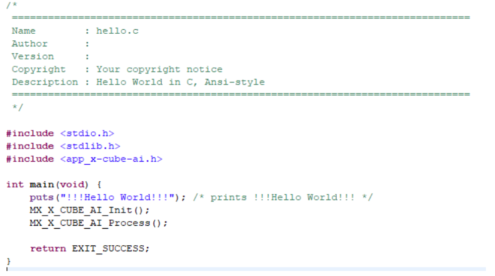 至此,在 PC 上验证 X-Cube-AI 算法的框架就已经完成。现在,你可以加入更多代码,例如,从文件中读入 X-Cube-AI 算法的输入,以及比较和或打印 X-Cube-AI 算法的结果。