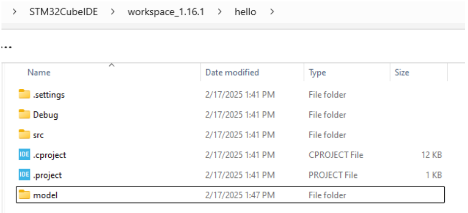 首先在工程目录下建立一个 model 目录,存放 x-cube-ai 生成的模型算法。目录结构如下图 3 所示: