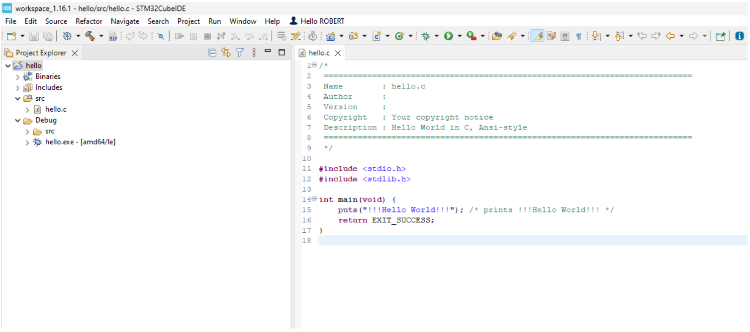 图1. STM32CubeIDE 下 hello 工程