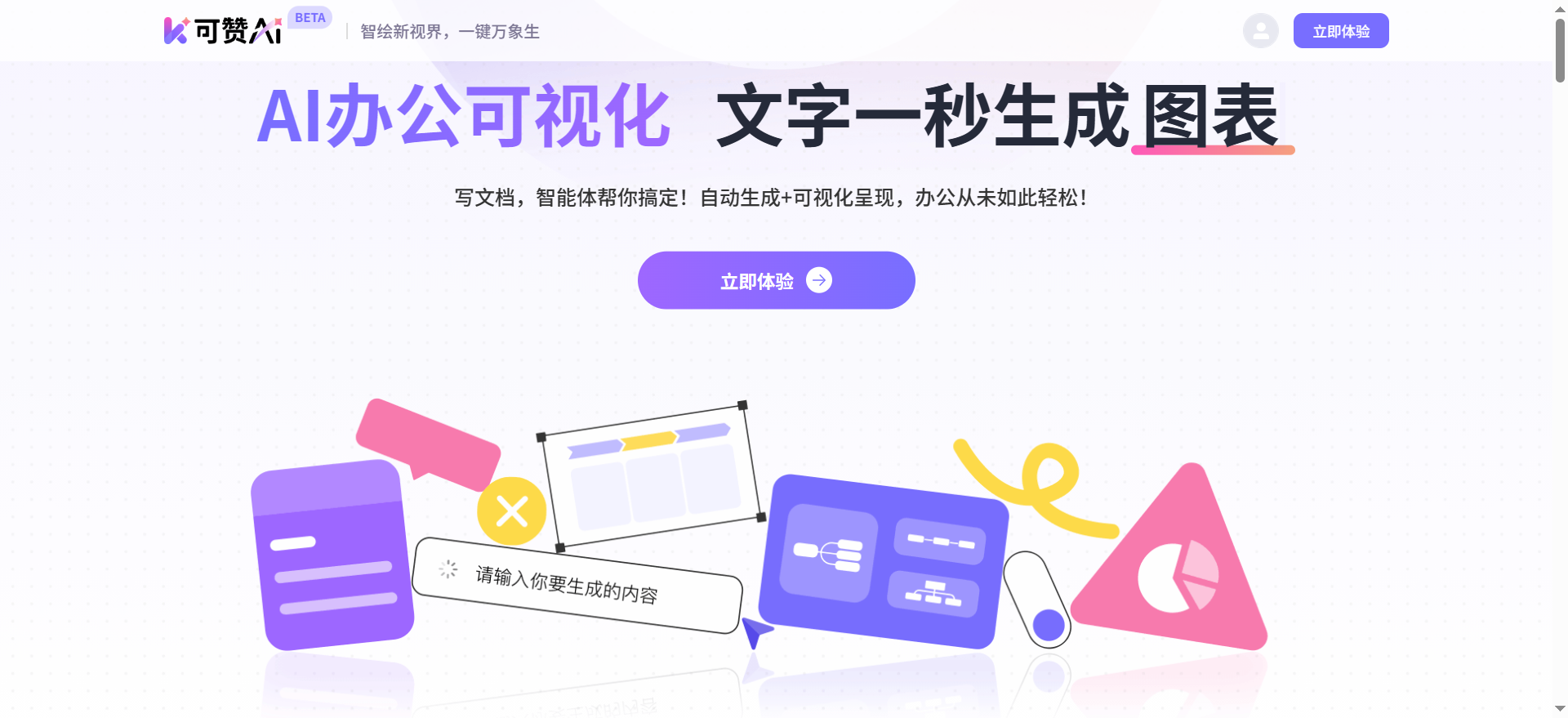 但最近我试了一款叫「可赞AI」的工具,居然真的把我从这些头疼事里捞出来了!它不像传统办公软件那样死板,也不是那种只会写废话的AI生成器——而是把「AI写作」和「智能可视化」揉在一起,让你一句话生成文档,还能自动把信息变成图表、思维导图、进度卡片等等。