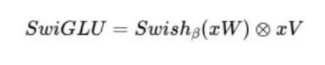 “ReLU 升级版”,β=1 时就是 x·sigmoid(x)。实验发现比 GeLU 稍好,但计算略贵,所以 LLaMA-2、PaLM-2 选它。