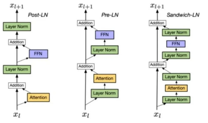缺点:深层梯度范数逐渐增大,深层 Transformer 容易出现训练不稳定