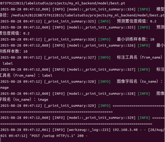 5.进入到project目录运行命令label-studio-ml start my_ml_backend -p 9094来启动模型后端服务