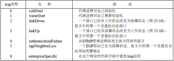 Trap是被管设备遇到紧急情况时主动向网管站发送的消息。网管站收到trap PDU后要将起变量对偶表中的内容显示出来。一些常用的trap类型有冷、热启动,链路状态发生变化等。