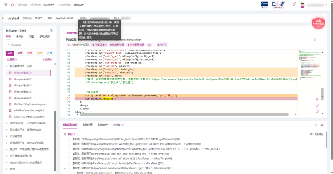 ·AI 审计验证:AI审计结果可自动同步至灵脉AI平台,减少安全团队与研发团队之间的反复沟通。
