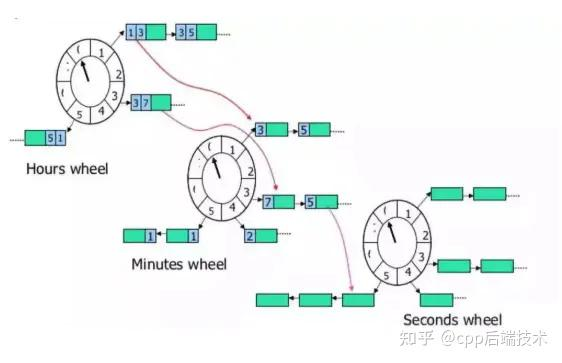 addTimer()是添加一个Timer到TimeWheel上,需要根据传递的timeout参数,计算出该Timer所对应的slot (slot = (curslot_ + (timeout % nslosts_)) % nslosts_;) ,还有到这个Timer超时时间轮的指针需要转过的圈数(timeout / nslosts_)。