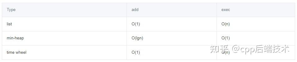 这里我只列出添加定时器和触发定时器的时间复杂度,因为这几种实现中,删除一个定时器可以优化到O(1)的时间复杂度————把其对应的回调函数置空。前面的例子我没有这么做,仅为展示,有兴趣的话可以自行修改。