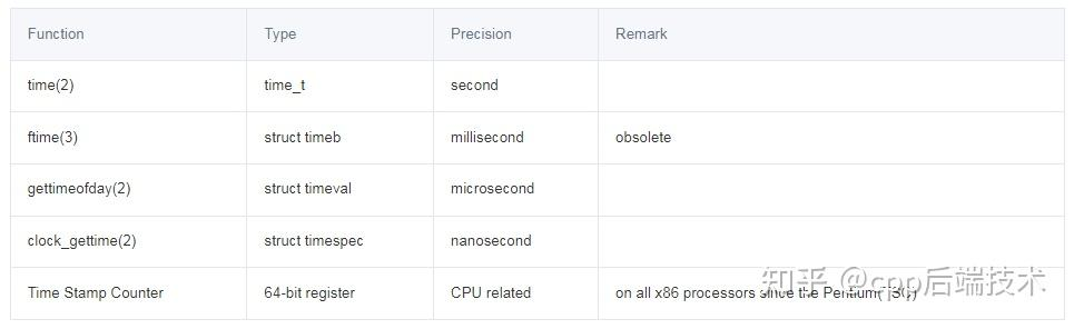 Time Stamp Counter 使用汇编指定获取时间戳的计数器,精度应该是最高的,效率可能也应该是最高的,一条汇编指令rdtscp(相比rdtsc,rdtscp可以避免,因为cpu乱序执行带来的误差问题)即可。是可以作为一个选择的,腾讯的libco就是优先使用这个方法获取时间的。
