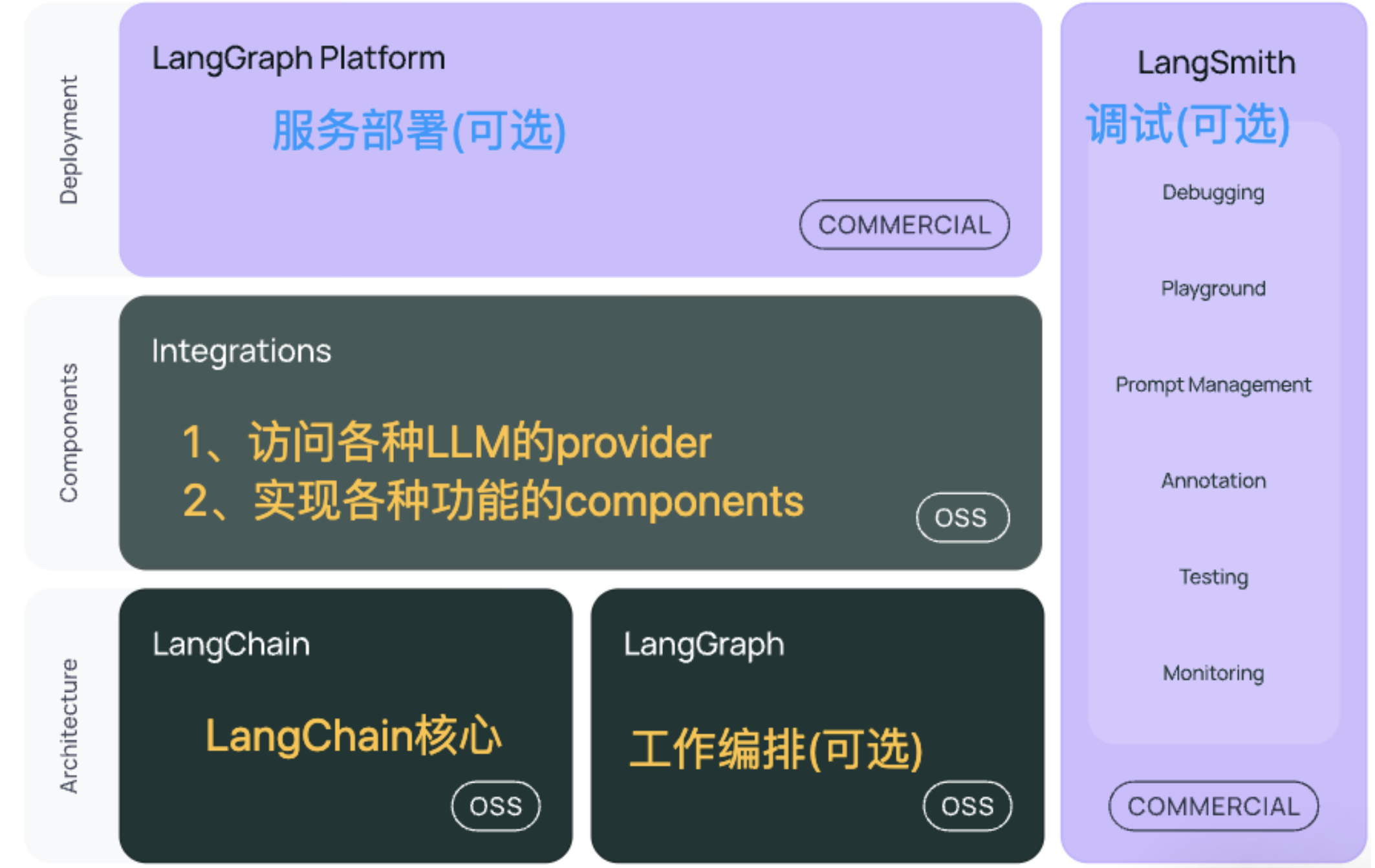 - LangGraph Platform:第三步,通过LangGraph Platform平台部署应用。这是一个商业化的平台,可以以标