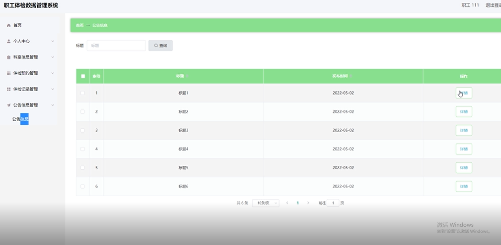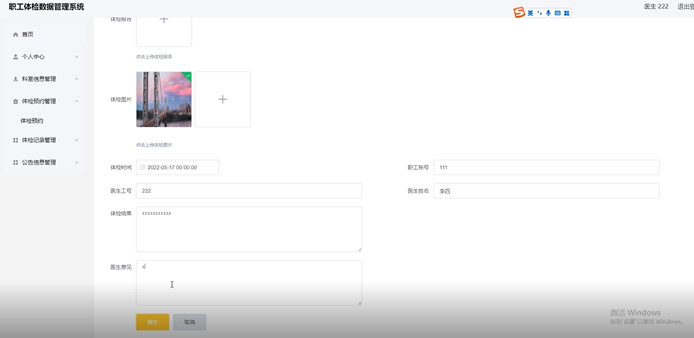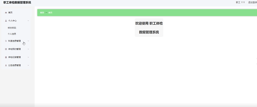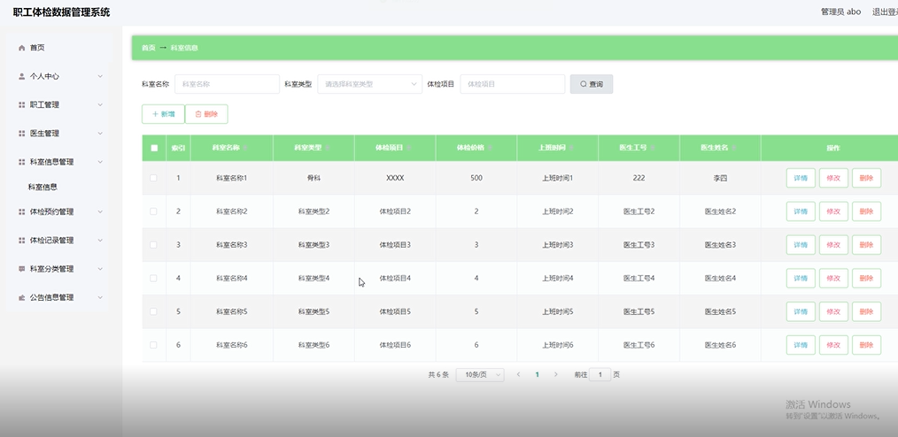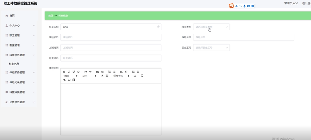 项目功能:职工,医生,体检信息,体检预约,体检记录,公告信息,总检医生,总检报告,科室分类