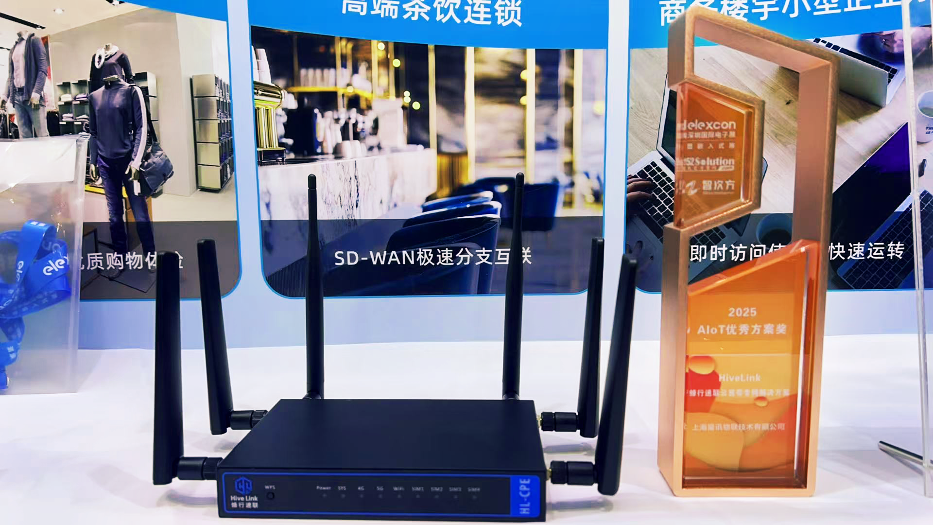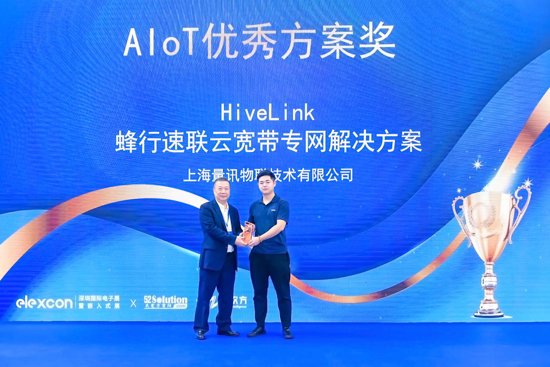 更值得庆贺的是,在展会同期举办的 AIoT 优秀方案评选中,HiveLink 蜂行速联云宽带专网解决方案从众多竞品中脱颖而出,成功斩获 “AIoT 优秀方案奖”!这一荣誉不仅是对量讯物联技术创新能力的高度认可,更是对量讯多年深耕物联网通信领域、持续为客户提供优质解决方案的有力肯定。