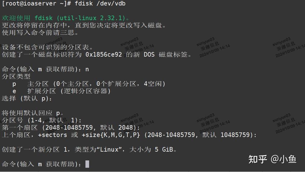 使用fdisk对磁盘创建分区,创建完后输入w保存
