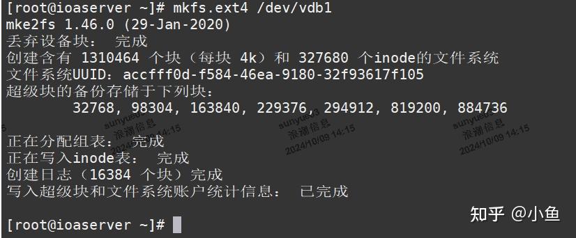 使用mkfs.ext4 /dev/vdb1格式化分区