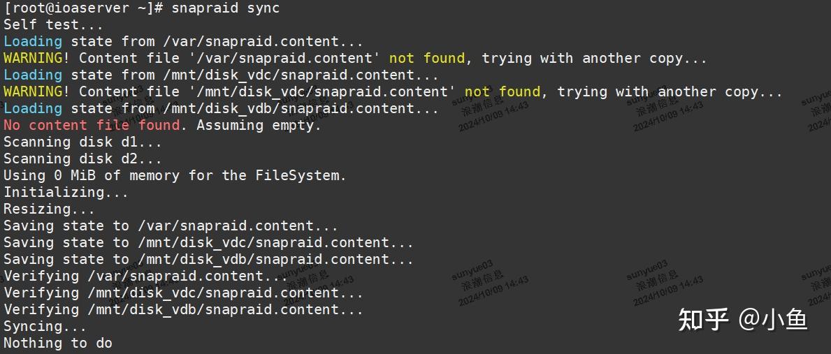 执行snapraid sync根据数据盘生成校验盘,执行成功