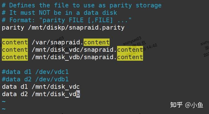 执行vim /etc/snapraid.conf编辑snapraid配置文件