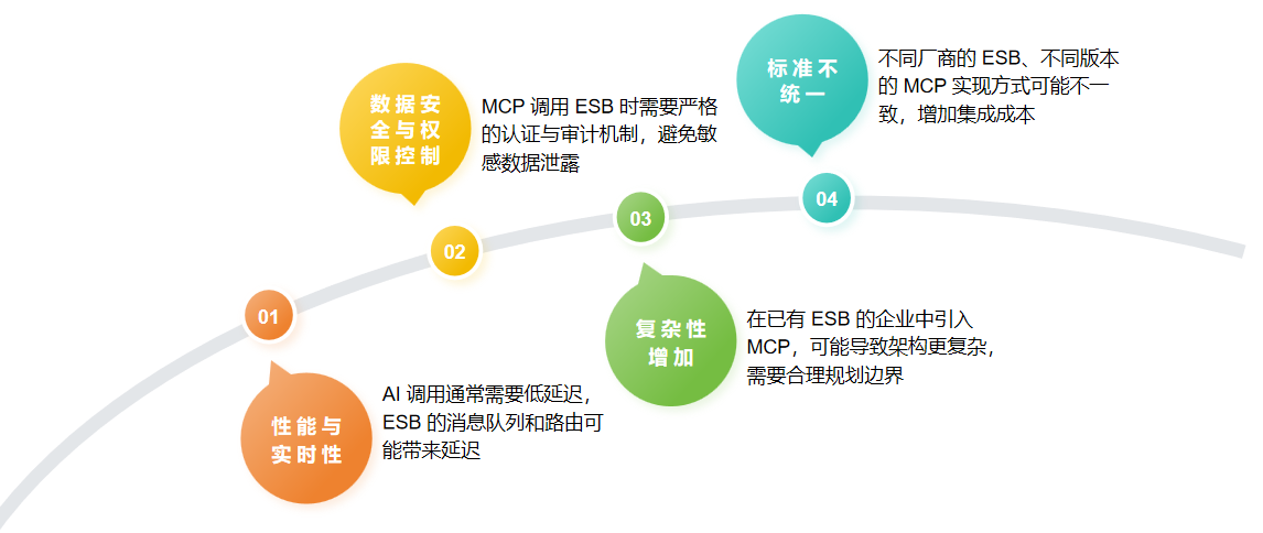 三、MCP 与 ESB 集成时,通常会面临以下挑战: