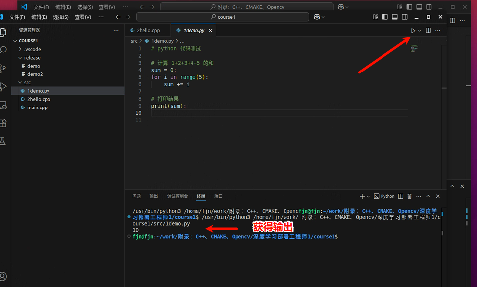 当然你点击右上角的运行键也是可以运行你的cpp程序的