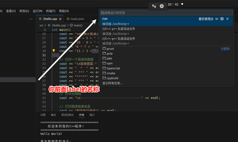 然后就可以看到你刚刚在tasks.json设置label名称了