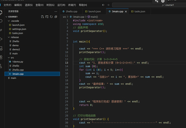 首先评估一下launch.json\settings.json\tasks.json这些vscode的配置文件需要必备吗?不需要,这个你了解一下,这几个文件的作用是你在vscode中进行写c++程序的时候,但是你不想要用cmake的时候才需要去学习这3个程序,配置这3个程序就可以无论你的程序多大,多复杂,只要用ctrl+shift+b就能生成可执行文件,并且容易整理你的程序框架。