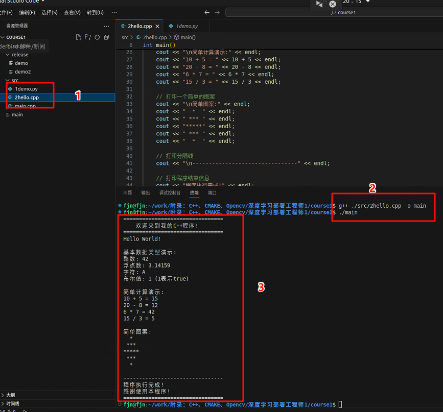 编写2hello.cpp然后在命令行中运行g++编译命令