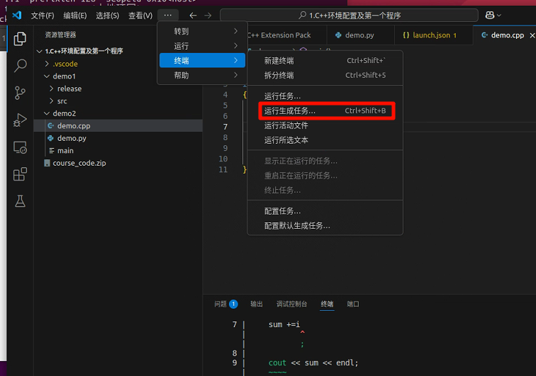 如果你是新开的窗口,没有task.json可以点击点击配置任务生成task.json