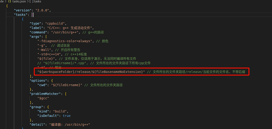 "program": "${workspaceFolder}/release/${fileBasenameNoExtension}", // 文件所在的文件夹路径/release/当前文件的文件名,不带后缀