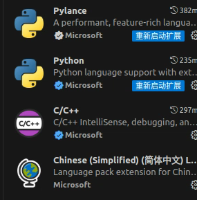 cinese(中文包)、C++(编程识别包)、ssh(远程连接包,这个非必须安装)
