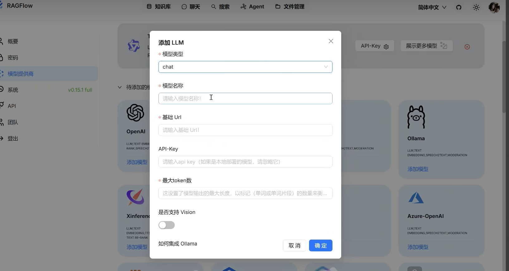 ollama list查看并复制名称)。 - 在模型名称框中填入复制的名称。