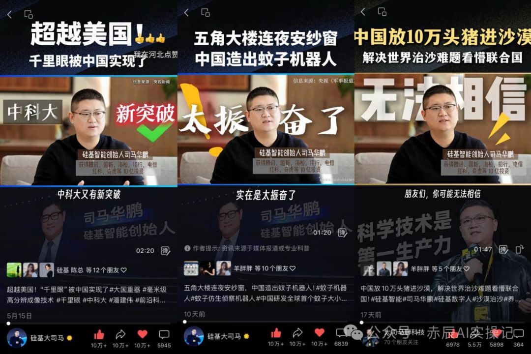 这种定位,让硅基大司马不只是“流量博主”,而更像是一个为民族科技摇旗呐喊的“鼓手”。它的爆火,也恰恰说明了这种情绪正在被广泛共鸣。 硅基大司马系列矩阵账号