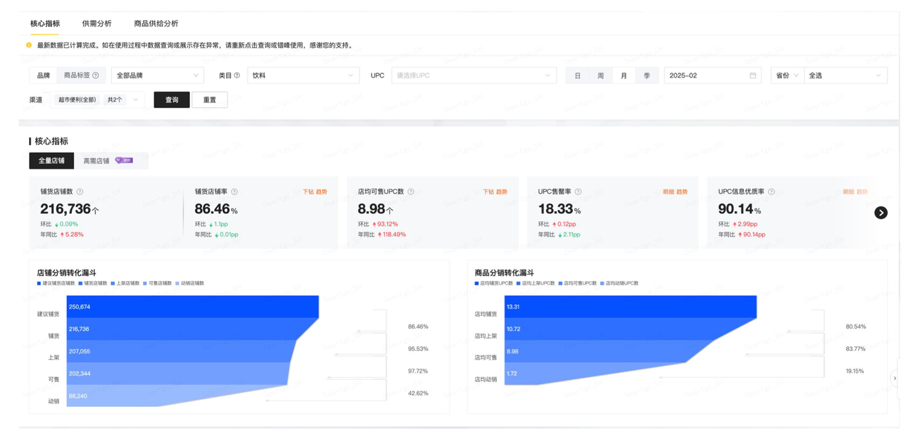线上+线下多渠道、实时动销数据可以帮助品牌方把新品销量、销售额拆分到各个城市,追踪新品在不同渠道的市场反响;同时联动线上品牌声量与线下导购传递的核心信息,避免“线上热、线下哑”的割裂问题。