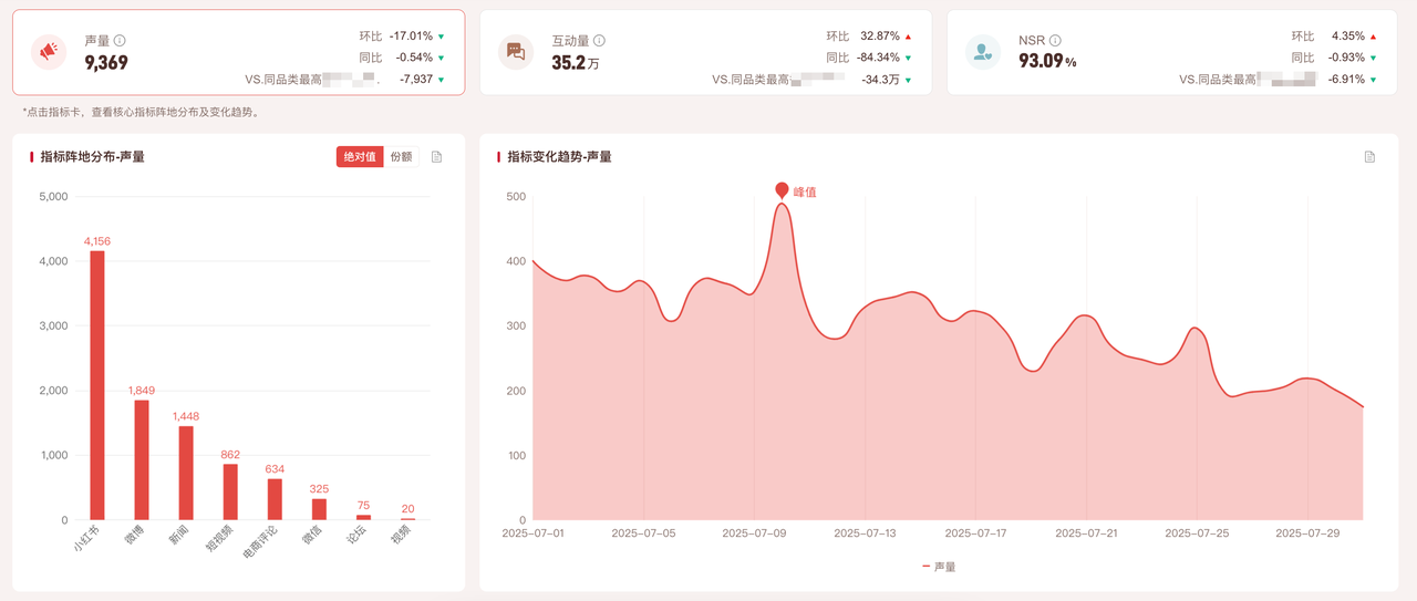 整合分散数据源,构建「新品导航仪」,关键指标(声量、销售、口碑)自动汇聚、智能分析、搭配可视化看板和AI交互入口。