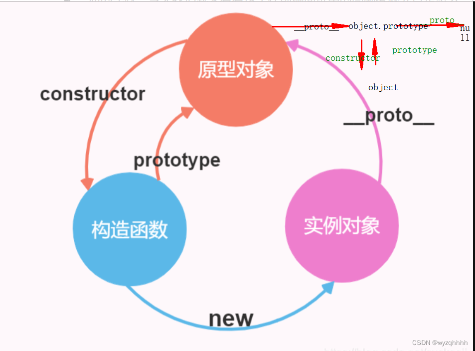原型对象也有自己的 proto ,原型对象的 proto 指向的Object.prototype。 Object.prototype.proto 其实是不存在的,是 null 。这也证明了 Object 是 JavaScript 中数据类型的起源。