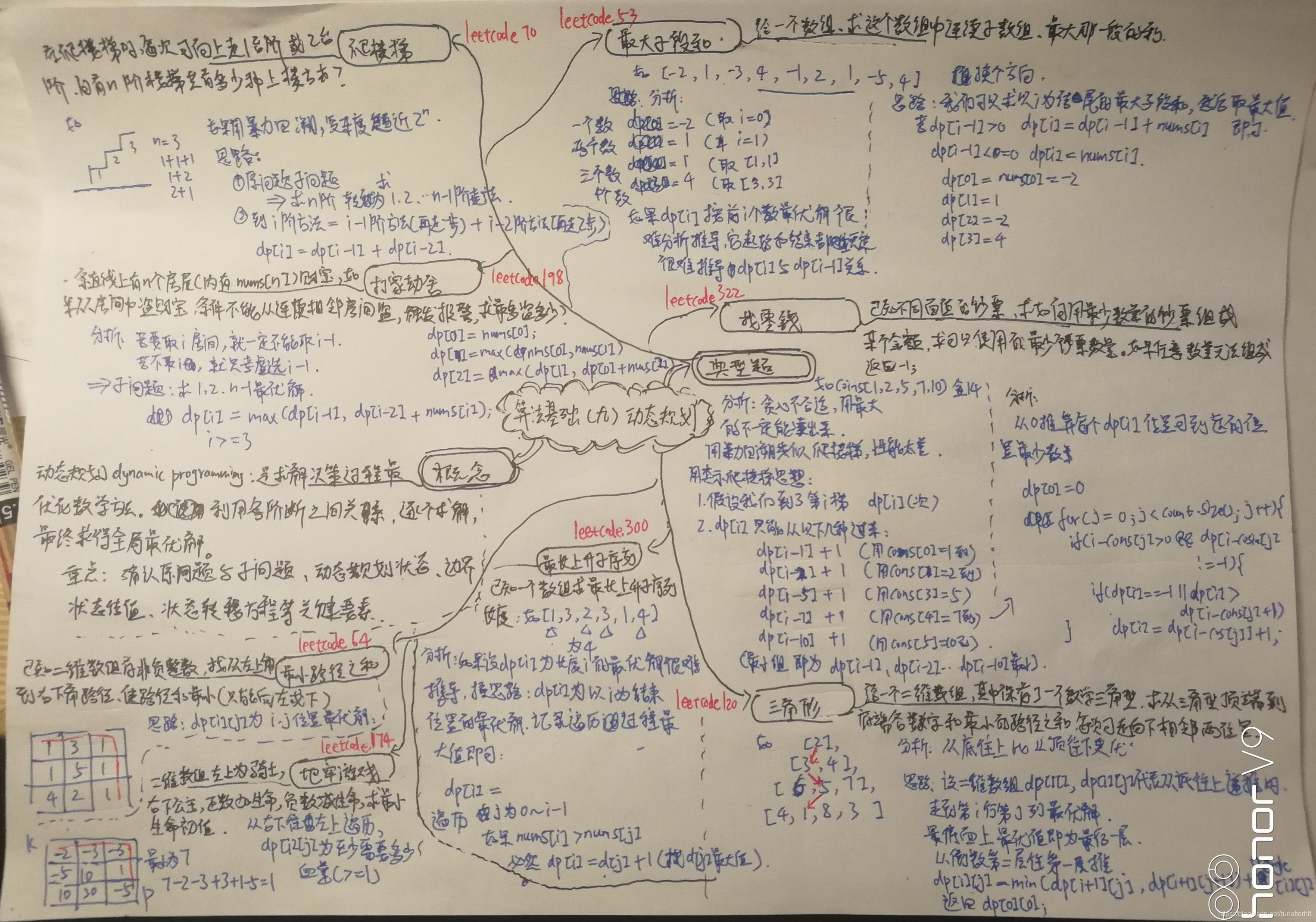 动态规划:是求解决策过程最优化数学方法,利用各个阶段之间的关系,逐个求解,最终得到全局最优解。这类题往往思路重要,代码量少。重点:确定原问题dp[n]与子问题、动态规划状态、边界状态值,状态转移方程式等关键要素;