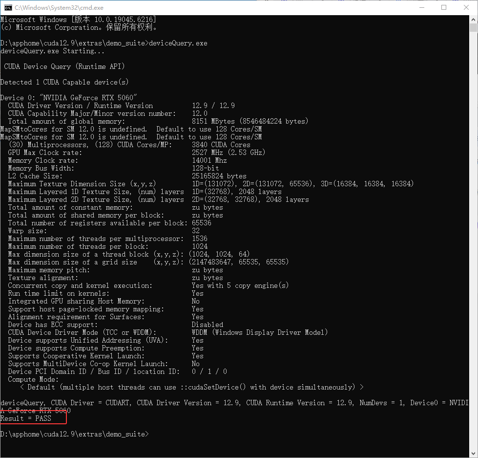 运行该命令,如果出现PASS相关信息就可继续进行测试,否则说明cuDNN安装失败(可以选择重启再来验证)。