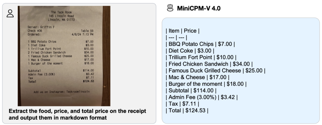 | MiniCPM-V 4.0 | gguf | 4 GB | llama.cpp/main -m minicpm-v4-q4_k.gguf |