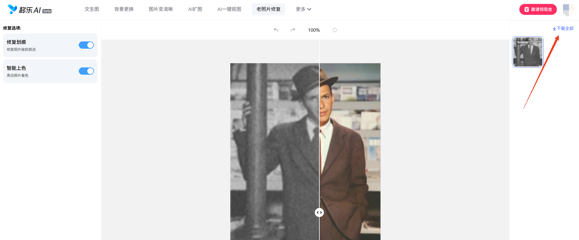 STEP 4:下载保存——获得一张“重生版”老照片