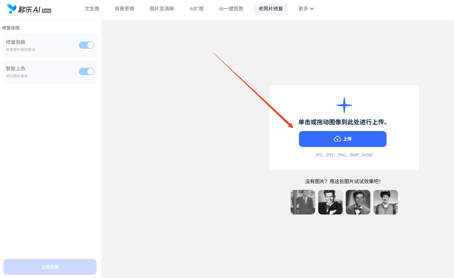 STEP 1:上传照片——拖拽一下,秒进AI暗房